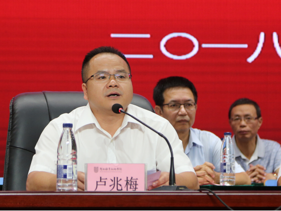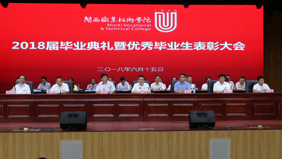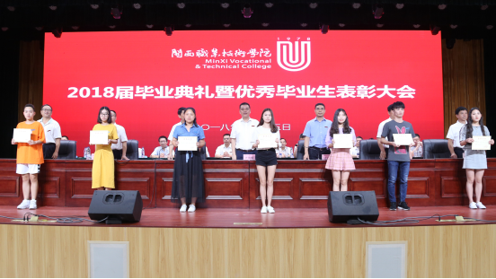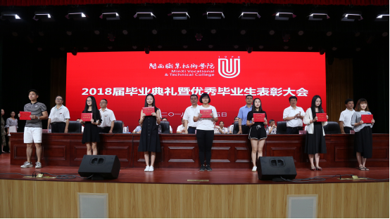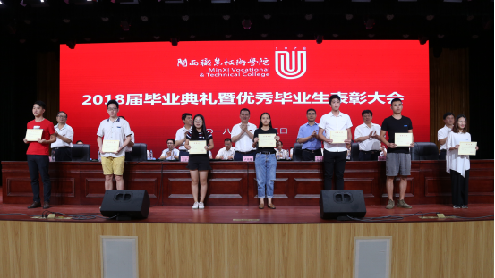 卢兆梅宣读了表彰2018届优秀毕业生及三好学生、优秀学生干部、工作积极分子的决定。在主席台就座的校领导为毕业生代表和优秀毕业学生代表颁发毕业证书和荣誉证书。