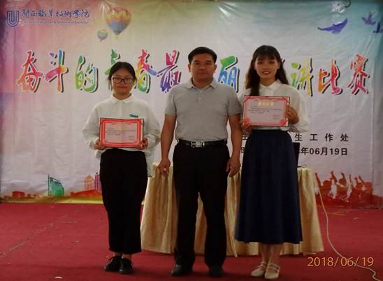 为深入贯彻习近平总书记在纪念马克思诞辰200周年大会上的重要讲话精神,推进“爱国 奋斗”精神教育活动在我校开展,6月19日下午,我校在学生活动中心举行了“奋斗的青春最美丽”为主题的演讲比赛决赛。经过激烈的角逐,王晓珍、罗林曼等两位同学获一等奖,张雅惠同学获二等奖,肖芳梅、徐小军、范琦等三位同学获三等奖。