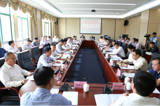 会上,郑志强介绍了我校的基本情况,并从主要工作情况、存在的问题和困难、下一步的工作着力点及请求解决事项四个方面汇报了我校近年来的产教融合工作。