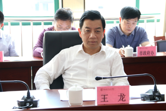 王龙在会上作了讲话。他充分肯定学院的办学成效,认为我校的发展空间巨大。他提出,我校应积极与各个县(市、区)和市直相关政府部门及企业对接,做好产教融合工作。对我校提出的问题也一一作了回应。