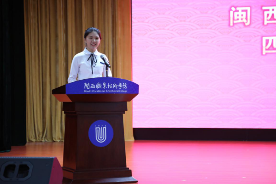 学生代表胡菲同学在发言中表示,我们将和校友们一样,志存高远,脚踏实地,把个人价值与祖国人民的命运紧紧联系在一起,用辛勤的汗水、扎实的学识技能,投身祖国建设事业,创造出彩人生。