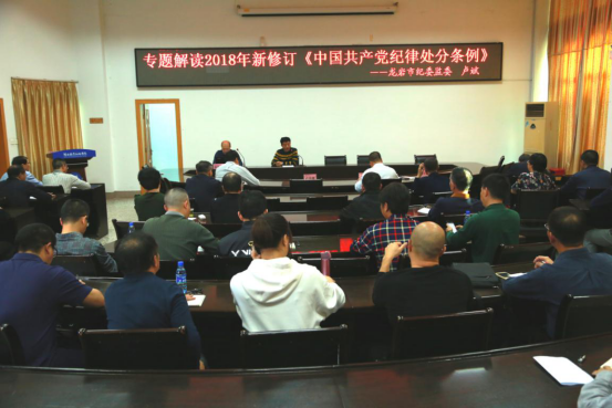 会议邀请市纪委监委第三纪检监察室主任卢斌对新修订的《中国共产党纪律处分条例》作专题解读。卢斌从《条例》修订的背景和特色、修改中的闽西实践、条例内容解读等三个方面,结合大量具体案例作了系统、深入的阐释和解读,特别对条例中的23个禁区进行逐条解读,对我校学习、宣传、贯彻、落实条例,将起到很好的指导和推动作用。