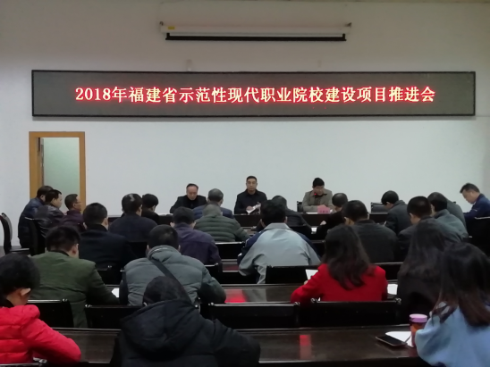 12月12日下午,我校在办公楼二楼会议室召开2018年度省示范性现代职业院校建设项目推进会。校长郑志强,各部门、单位行政负责人及联络员,项目一级指标负责人及联络员,建设办成员参加了会议。副校长吴新业主持会议。
