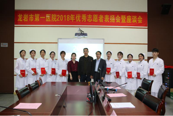 1月14日下午,龙岩市第一医院2018年度优秀志愿者表扬会暨座谈会在市第一医院举行,团市委郭昊瑜副书记,市一院相关领导及我校团委负责人等出席了此次座谈会,我院共10位志愿者获表彰。