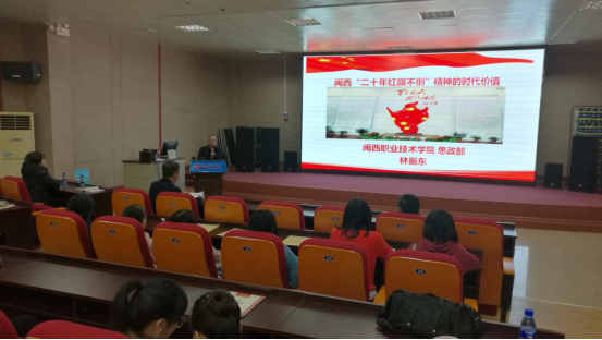 卢伟耀指出,闽西是中央苏区、革命老区,享有“二十年红旗不倒”的美誉,红色资源丰富独特,希望文旅创意学院全体教师、党员通过系列讲座引起对闽西文化,尤其是红色文化的关注、兴趣,对脚下的这片红土地有更多的了解、思考,并在文旅创意方面作出成绩。林振东教授以《闽西“二十年红旗不倒”精神的时代价值》为题,从中央苏区概况、闽西苏区的形成、闽西苏区为什么能做到“红旗不倒”、闽西“二十年红旗不倒”精神的时代价值等四个方面进行详细阐述,让全体人员进一步感知闽西红土地,加深对“红旗不倒”精神的了解,激发大家坚定信念、积极作为、开拓创新、勇争一流。