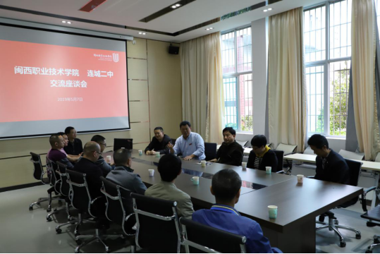 座谈会上,李贞鑫向连城二中教师的到来表示欢迎。春季高职招考连城二中有60名同学被我校录取,他对该校师生对我校的信任与支持表示感谢。他简要介绍我校发展情况及今年春季招生情况。他说,我校虽处山区,但在城市中心,吃、住、行、娱都很方便,学校名列全省高职院校前茅,希望各位老师多多宣传。刘路永说,我校积极探索高职教育的发展规律,培养“一技在手的新时代阳光工匠”,全力为学生提供良好的学习、生活环境,聚力让学生学到技术技能,让学生德、智、体、美、劳全面发展。