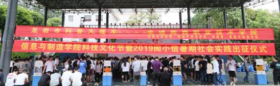 活动中,举行2019闽小信“科技三下乡”暑期社会实践出征仪式,由2018年暑期社会实践队长陈秋龙同学向2019年暑期社会实践队长王灵同学授旗。活动还宣传网络科技安全知识,落实党委宣传统战部转发的关于龙岩市防范非法集资宣传月活动的通知精神,组织师生“携手筑网 同防共治”远离非法集资、拒绝校园贷签名活动。