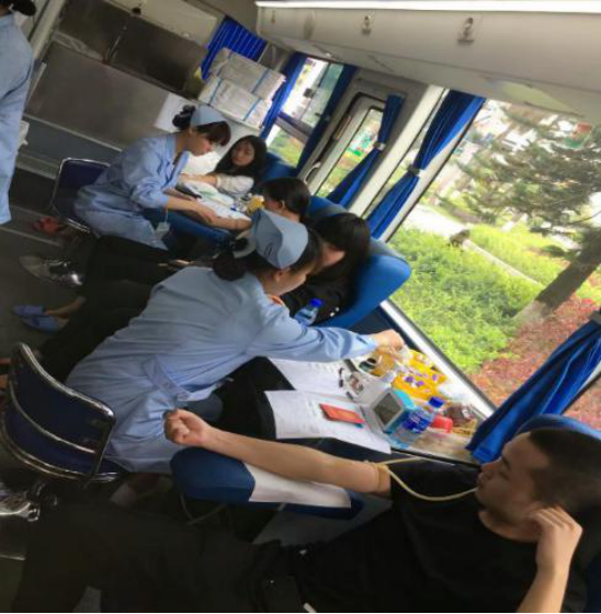 5月下旬,我校和龙岩市中心血站在南校办公楼前、北校实训楼前开展义务献血活动。