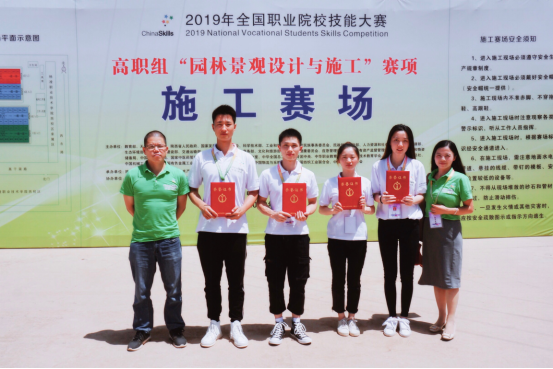6月3日,我校在2019年全国职业院校技能大赛(高职组)“园林景观设计与施工”赛项中,由我校文旅创意学院郭舜(领队)、夏建红、刘志中等三位指导老师和唐丽洁、张木娟、郑前锟、李福城4名学生组成的代表队,代表福建省参加大赛获得三等奖。