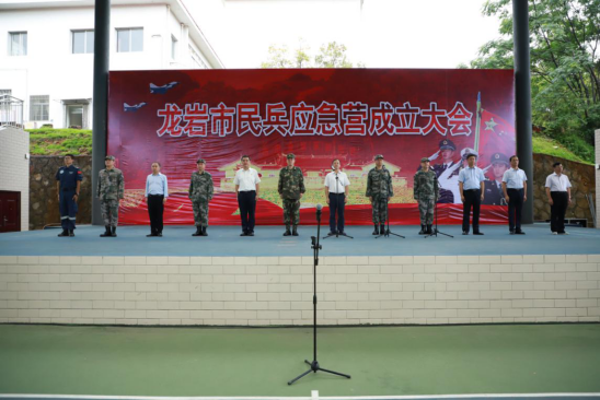 何明华强调,要接续红土精神,强化新时代使命担当,增强“四个意识”、坚定“四个自信”、做到“两个维护”,贯彻军委主席负责制,永远做党和人民忠诚卫士,努力把民兵应急营建设成为战时支前保障的“先锋”、平时应急处的“突击队”。要聚焦应急应战,强化提升能力素质,发扬战斗精神和奉献精神,坚决服从命令、听从指挥,加强训练演练,不断提升执行任务的应急应战能力,营造“比学赶超帮”的良好氛围。要发挥军地合力,强化融合服务保障,把党中央关于军民融合发展的理念和要求贯穿军队建设全过程,发挥双拥工作优良传统,落实好支持国防和军队建设的政治责任,努力为推动国防建设和我市经济社会高质量发展落实赶超贡献新的力量。成立大会上,市委常委、龙岩军分区政委张春秋宣读了有关任职命令;龙岩军分区司令员邹建伟向市民兵应急营授旗;全体民兵进行了宣誓、民兵代表作了发言。