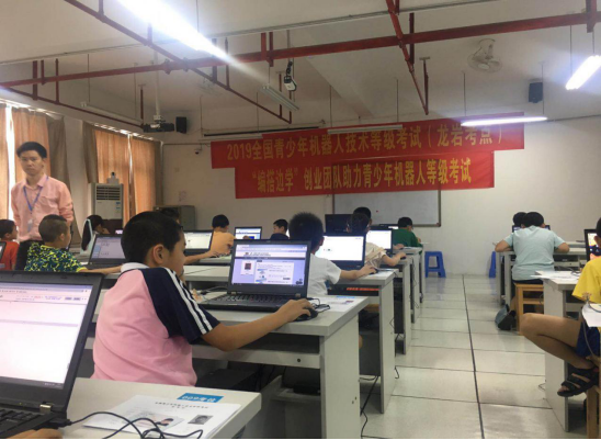 近日,全国青少年机器人等级考试(龙岩站)在我校实训楼411室开考,考试内容分为理论和实操两部分。此项考试由中国工信部下属事业单位中国电子学会主办,我校承办。