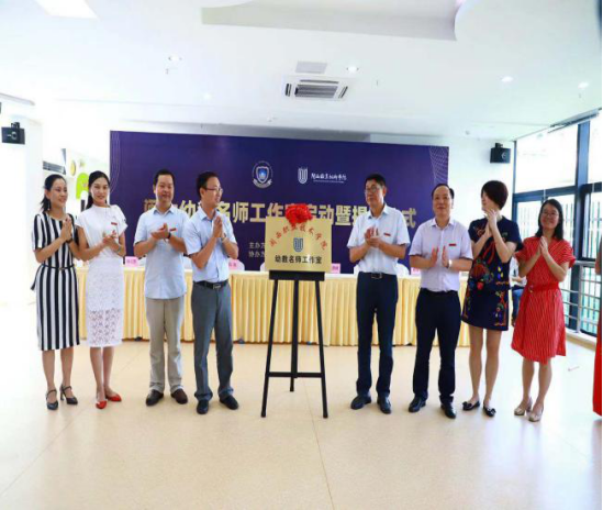 吴新业和瑞丁堡幼儿园董事长吕达共同为工作室揭牌。