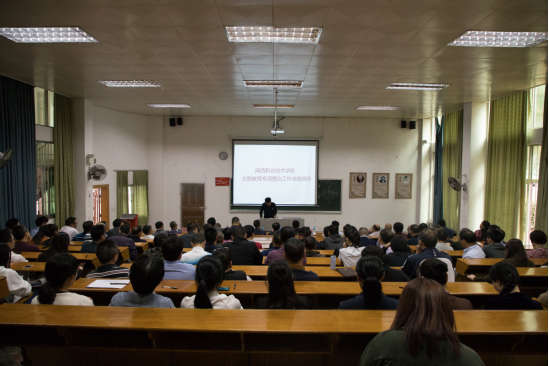 11月25日下午,我校在办公楼一楼影视厅召开“不忘初心、牢记使命”主题教育专项整治工作成效测评会。市委主题教育第十巡回指导组邱长青组长到会指导。我校党委书记卢伟耀,校长郑志强,党委副书记李贞鑫,副校长吴新业,副校长刘路永,副校长卢兆梅,纪委书记参会。李贞鑫主持会议。