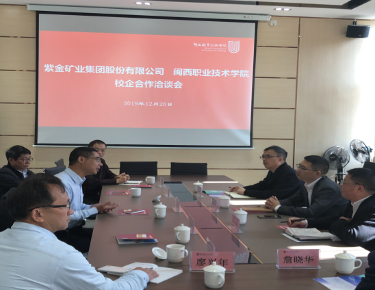 12月26日上午,紫金矿业集团有限公司人力资源部副总经理冯枭岂率人力资源部培训处负责人等一行到我校开展校企合作洽谈,我校校长郑志强、副校长吴新业,教务处负责人,科技产学合作处相关负责人,相关院系负责人等参加了洽谈会。