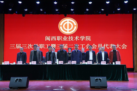12月24日下午,我校三届三次教职工代表大会暨三届二次工会会员代表大会在大匠堂召开。大会由副校长卢兆梅主持,校党委书记卢伟耀,校长郑志强,党委副书记李贞鑫,副校长吴新、教代会代表、列席人员参加了大会。