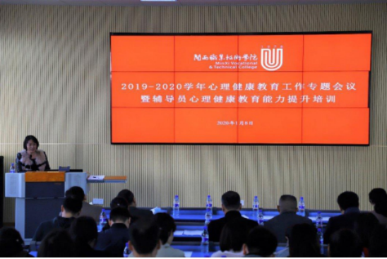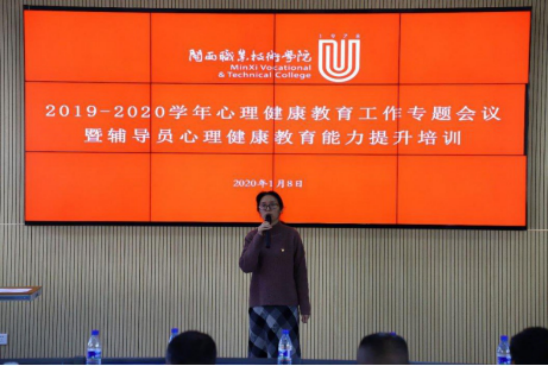 为进一步推进我校心理健康教育工作,促进大学生心理素质的提高,落实我校心理健康教育四级工作网络建设,1月8日上午,我校在文科楼一楼报告厅召开了2019-2020学年心理健康教育工作专题会议暨辅导员心理健康教育能力提升培训。校长郑志强,副校长刘路永,学生工作处、团委负责人,二级院(系)党委书记、副书记及全体辅导员参加了会议。会议由学生发展研究中心负责人主持。