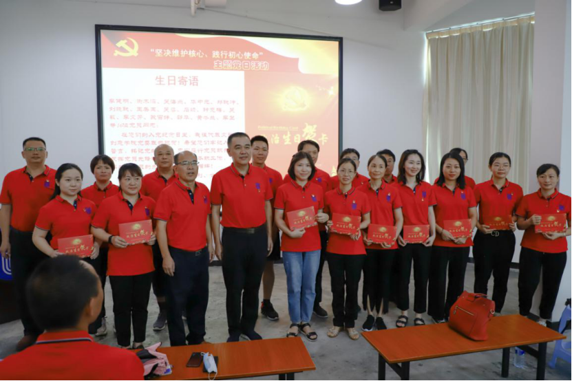 温献荣书记为“七一”前后光荣加入中国共产党的16位党员同志发放了《政治生日贺卡》,寄语生日祝福,希望全体党员牢记入党誓词,铭记党的宗旨,忠实履行党员职责,发挥共产党员先锋模范作用,做好本职工作,永葆共产党员的先进性,为党旗增辉。