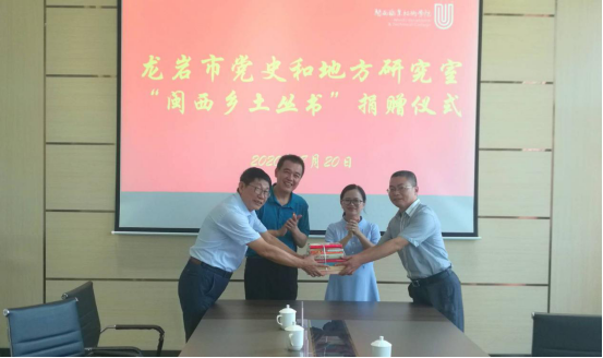 8月20日上午,中共龙岩市委宣传部副部长、龙岩市党史和地方志研究室副主任等一行到我校开展“闽西乡土丛书”捐赠活动。我校党委书记卢伟耀,副校长吴新业及文化与旅游学院班子成员、部分专业老师参加捐赠活动。