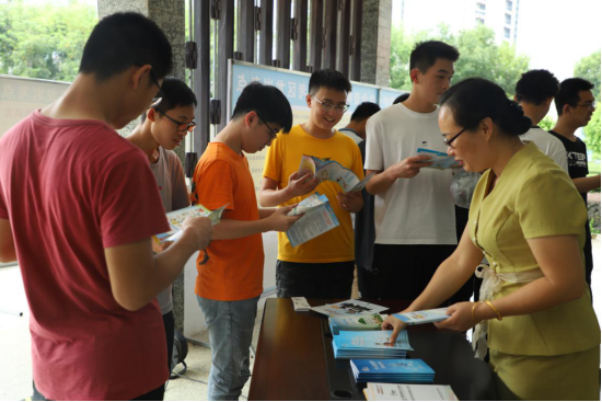 活动现场的学生们认真阅读网络安全宣传材料,向老师咨询相关问题。