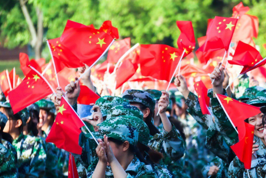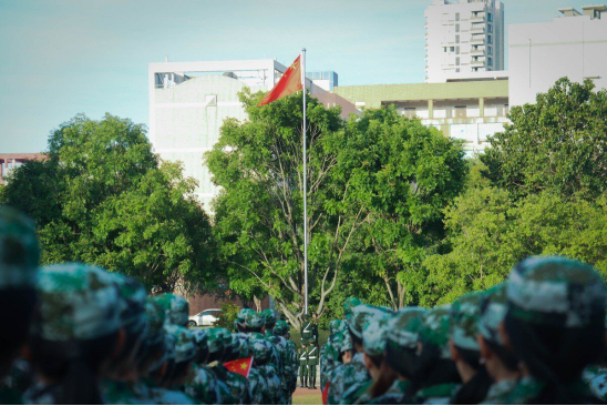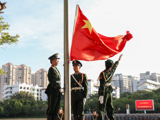在庄严的国歌声中,国旗缓缓升起,2020级学生军训会操暨先进表彰大会拉开序幕。
