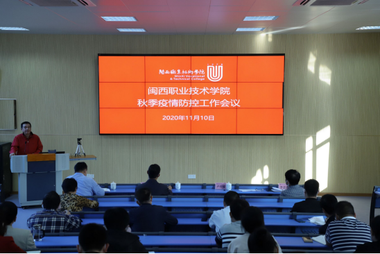 11月10日下午。我校在望云楼阶梯教室参加2020年福建省全省秋冬季学期疫情防控工作专题视频会议。校党委书记卢伟耀,校长郑志强,党委副书记李贞鑫,副校长刘路永,副校长卢兆梅,纪委书记温献荣,相关部门负责人、各二级学院党政负责人参加会议。