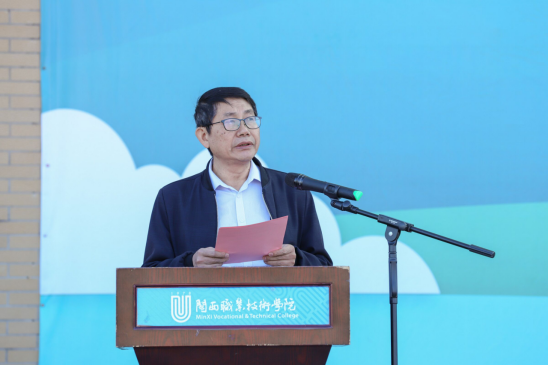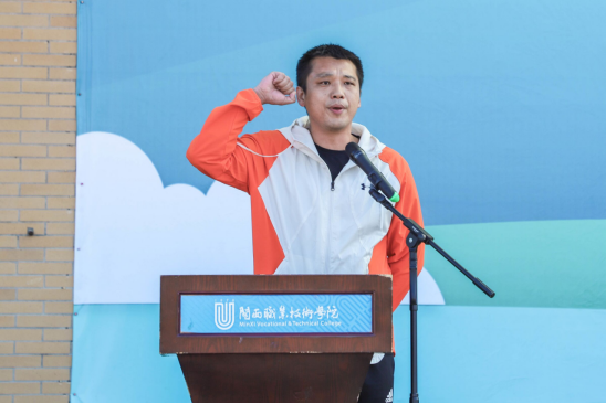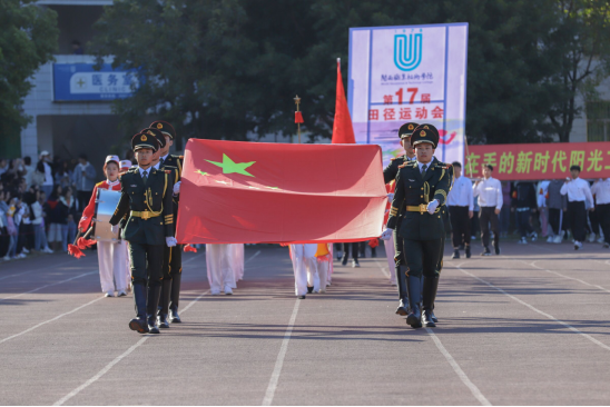 郑志强为运动会致开幕词。他代表组委会对运动会的召开表示热烈的祝贺,向全体裁判员、运动员致以亲切的问候!郑志强指出,学校高度重视体育教育,一年一度的田径运动会是我校的重大体育盛事,也是学校体育工作的一次集中检阅。更是广大同学展示风采、促进交流的舞台。一名合格的大学生应该做到全面发展、身心健康,充满青春活力,无论在考场上,还是在运动场上都要奋力拼搏、勇往向前。他提出,希望全体运动员发扬“更高、更快、更强”的奥林匹克精神,以昂扬的斗志,赛出风格、赛出友谊、赛出水平,取得优异成绩;希望全体裁判员严格按规程操作,做到公平、公正,维护赛场纪律,保证赛场安全;希望全体工作人员密切配合、热情服务、相互支持;希望全校师生进一步提高健康意识,积极参加体育锻炼、增强体质,形成体育运动常态化,养成健壮的体魄和旺盛的精力。