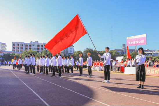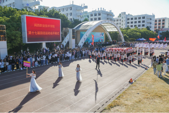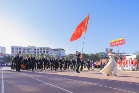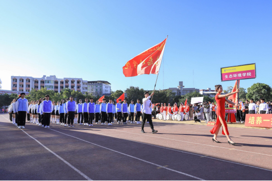 伴着激昂奋进的运动员进行曲,国旗方阵、锣鼓队、校旗方阵、标语牌方阵、裁判员方阵,他们精神抖擞、气宇轩昂地向主席台走来,各二级学院代表队依次入场,他们穿着整齐的服装,迈着矫健的步伐,高喊着响亮的口号通过主席台,接受校领导的检阅,展现我校师生积极向上的精神风貌。
