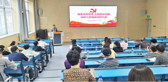 卢兆梅以《锤炼党性修养,为民务实清廉》为题,结合习近平总书记在福建17年的探索与实践,生动诠释“以人民为中心”的要义与内涵,从大医精诚的深刻内涵分析锤炼党性修养的重要意义,阐述当前党性修养存在的突出问题,提出党员加强党性修养、做到为民务实清廉的具体路径。