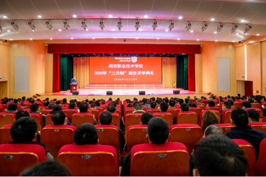 12月20日上午,我校2020级二元制新生开学典礼在大匠堂隆重举行。我校校长郑志强,副校长吴新业,福建龙麟集团有限公司副总经理黄永生、华润水泥(福建)股份有限公司人力资源副经理罗宝英,龙岩市新罗区汽车与工程机械配件商会秘书长吴端良、副秘书长蓝何金,我校相关二级学院负责人、教师及2020级二元制新生参加开学典礼。典礼由吴新业主持。