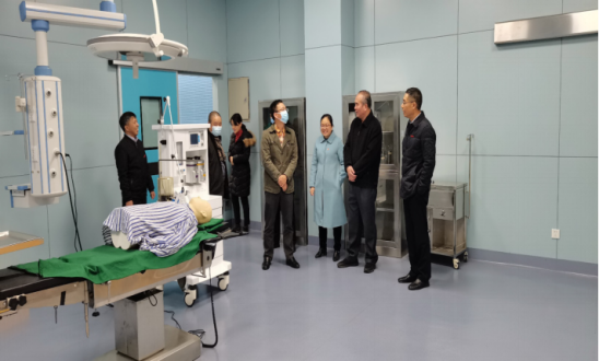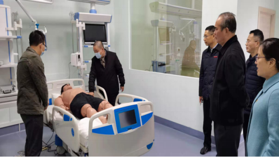 蓝福元一行察看了医护学院实训楼急救综合技能实训中心、模拟手术室、分娩示教室和基础护理、重症监护等实训室,郑志强简要介绍了医护学院办学情况。双方就医教结合、院校合作、医疗卫生人才培养培训等方面进行交流探讨。蓝福元表示,医护学院办学基础条件好,发展快,希望医护学院主动对接龙岩医疗卫生事业,为龙岩医疗卫生行业培养更多高素质技术人才。