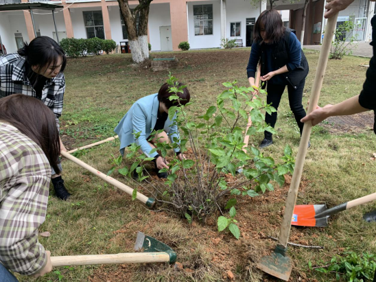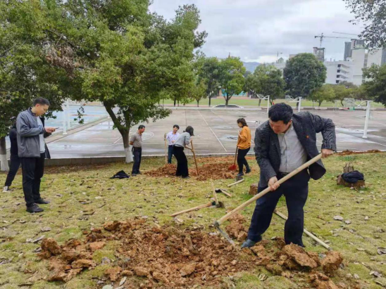 为增强教职工的环保和绿化意识,营造人人植树,美化环境的良好氛围,近日我校组织党员教师开展植树活动。