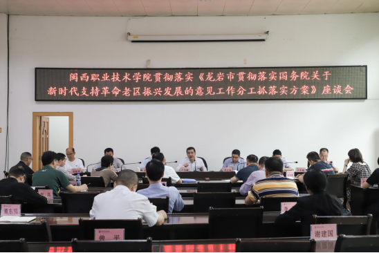 3月29日,我校召开落实《龙岩市贯彻落实<国务院关于新时代支持革命老区振兴发展的意见>工作分工抓落实方案》座谈会,全体校领导、各部门负责人、二级学院负责人参加了座谈会,党委书记卢伟耀主持会议。