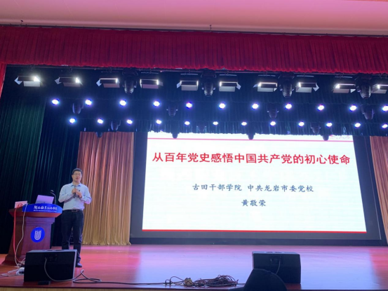 4月1日晚,我校在大匠堂举行“青马工程”培训班讲座,古田干部学院、中共龙岩市委党校黄敬荣老师作《从百年党史感悟中国共产党的初心使命》的党史教育主题报告,2021年“青马工程”培训学员及2020级、2021级班级团支书共300名学生干部参加。