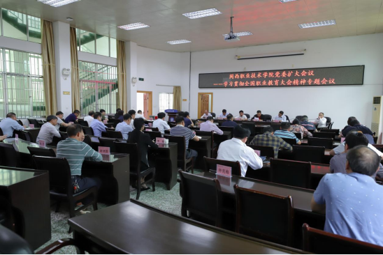 4月14日下午,我校在第一会议室召开学习贯彻习近平总书记对职业教育工作的重要指示和全国职业教育大会精神会议,校党委书记卢伟耀,校长郑志强,党委副书记李贞鑫,副校长吴新业,副校长刘路永,副校长卢兆梅,各部门负责人,各二级学院负责人参加了会议,会议由卢伟耀主持。