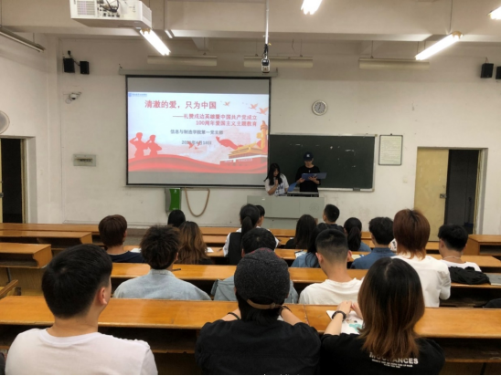 4月18日,信息与制造学院第一党支部举行“清澈的爱 只为中国”礼赞戍边英雄暨中国共产党成立100周年爱国主义主题教育。