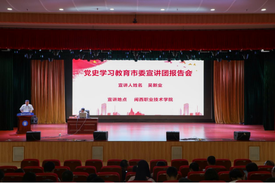 报告会上,吴新业围绕“如何树立正确的党史观?”“怎样充分认识党史学习教育的重大意义?”“如何深刻把握党史学习教育的重点?”等方面将党的百年历史娓娓道来。闽西是革命老区,拥有得天独厚的党史学习条件,他要求全体教职工要将党史学习教育贯穿立德树人全过程,激励学生要知史爱党、知史爱国,坚定不移听党话、跟党走。