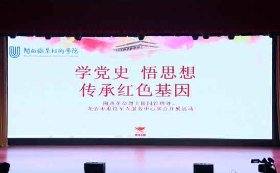4月22日晚,“青马工程”暨“学党史,悟思想,传承红色基因”培训班专题讲座在大匠堂举行。讲座邀请到闽西革命烈士陵园管理处主任蒋红婴,湘江战役龙岩籍陈炳寿烈士后代陈文云和龙岩电视台新闻中心副主任邱学军分别讲述他们和红三十四师的红色故事。副校长刘路永、龙岩市退役军人服务中心主任王业建、校团委负责人出席,2021年“青马工程”培训学员、2019和2020级各班团支书、各院系干部共478名学生干部参加本次讲座。