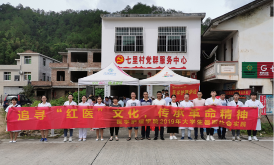 积极推动校村共建美好家园。大力弘扬互帮互助精神,在钟国坚的努力推动下,我校领导每年都亲自给村中老人、儿童送去节日的祝福和关爱;2019年暑假,我校师生前往七里村开展“大学生暑期社会实践活动”,把“最美时光”带给山区的孩子们,让山区的孩子同样可以享受美妙的音乐盛典;医学护理学院师生在村里开展义诊活动,向村民们普及医疗卫生知识,追寻“红医”文化,传承革命精神。
