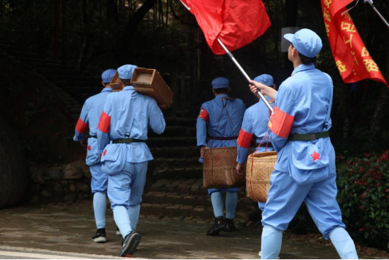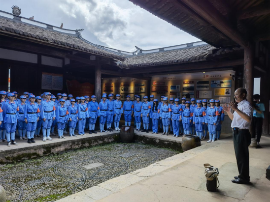下午,师生们前往松毛岭战役纪念碑缅怀革命烈士,聆听英雄事迹;到“中国长征第一村”中复村重走红军桥、红军街;参观了红九军团长征出发地--观寿公祠并重温宣誓、喝壮行酒、领行军干粮、点燃“革命圣火”等长征出征仪式。