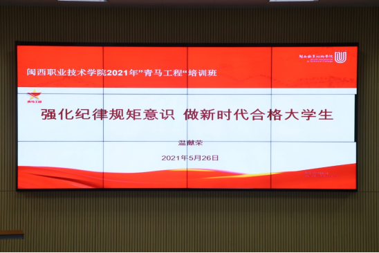 5月26日晚,“青年马克思主义者培养工程”培训班讲座在望云楼一楼阶梯教室举行,校纪委书记温献荣作题为《强化纪律规矩意识,做新时代合格大学生》的主题讲座,2021年“青马工程”培训班123名学员参加。