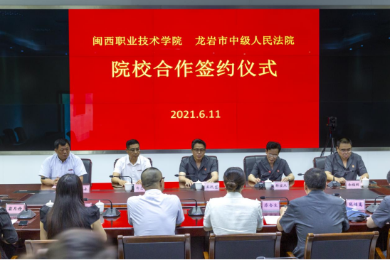 6月12日,我校与龙岩市中级人民法院签署院校合作协议。我校校长郑志强,副校长刘路永、学工处负责人,龙岩中级法院党组书记、院长王孔坚,副院长林宜杰、余福明等出席签约仪式。