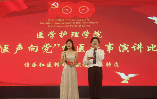 6月1日晚,医学护理学院在天马校区礼堂举办“医声向党”红医故事演讲比赛。