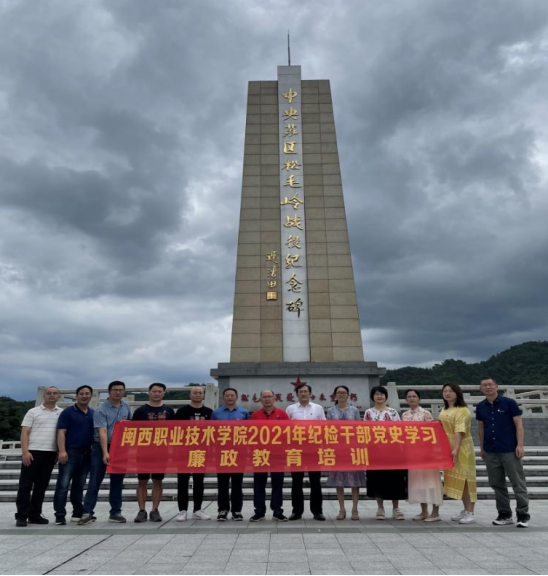 为庆祝中国共产党建党100周年,6月24-25日,我校纪委组织校纪检干部赴红四军新泉整训纪念馆、松毛岭无名烈士墓、长汀中复村、何叔衡廉政教育基地等地开展党史学习、廉政教育培训。