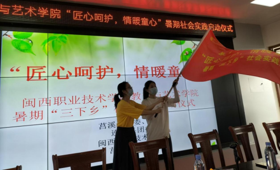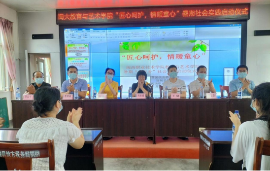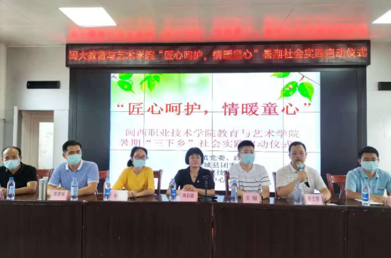 7月6日,我校教育与艺术学院2021年“匠心呵护,情暖童心”暑期“三下乡”社会实践启动仪式在连城县莒溪中心小学顺利举行。教育与艺术学院师生,莒溪镇人大主席周彩霞,连城团县委书记王健,莒溪中心小学德育处主任罗汉平等出席本次仪式。