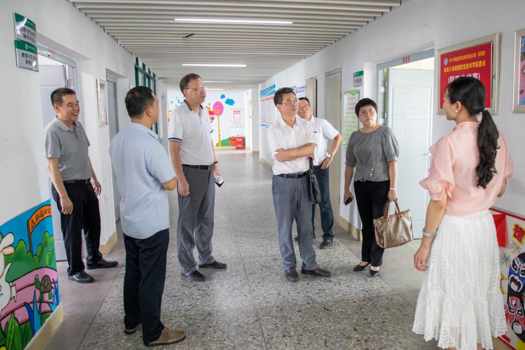 在学校党委书记卢伟耀、校长梁俊平的陪同下,刘健副厅长一行深入考察我校校园环境、新实训大楼、教育与艺术学院等建设情况,对我校基础设施、教学和实训条件的改善给予了充分的肯定。