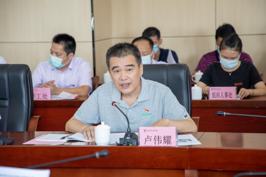 座谈会上,学校党委书记卢伟耀代表学校对刘健副厅长一行表示热烈欢迎,对省教育厅一直以来的关心和指导表示感谢。随后,卢伟耀从学校红色育人体系、专业(群)建设、质量保证体系建设、产教融合矩阵建设、社会服务工作、“双高”项目建设等六个方面介绍了学校事业发展情况,就学院当前改革发展中存在的困难、需请求支持解决的事项向各位领导作了汇报。市职业教育中心主任张曙辉就学校在引领示范龙岩职业教育发展成效上作了汇报。