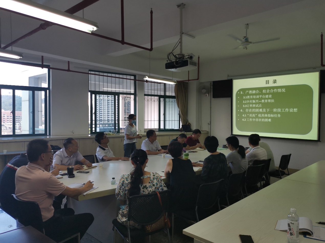 副校长吴新业,党政办、教务处、教师工作处、对外交流合作处等部门负责人陪同调研。各二级学院党政班子成员,专业群负责人参加调研会。