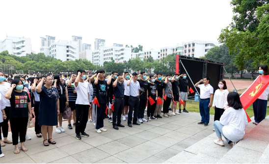 党旗下,党员们重温入党誓词,激励着青年学生争先创优,不忘初心、牢记使命,刻苦学习,努力把自己锻造成合格的新时代阳光工匠;师生们在“不负青春 强国有我”签名墙上签名,许下庄严承若;学院党委负责人,学生党员代表、大一新生代表在国旗下讲话,向祖国母亲送上生日祝福,表达作为中华儿女对伟大祖国取得的辉煌成就自豪感;全体师生合唱《歌唱祖国》,用嘹亮的歌声祝福伟大的祖国繁荣富强。