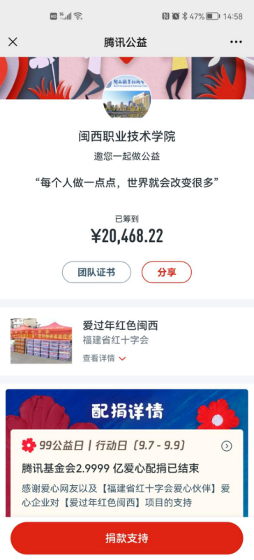 志愿者们在文化长廊驻点宣传,对来往的师生进行募捐介绍,前往办公楼和宿舍楼向老师和同学们答疑解惑。在全校师生、部分校友和亲朋好友的努力下,截至9月9日晚24时总筹款19644.59元,其他捐款823.63元。截至目前,已筹到善款20468.22元,最终所有筹得款项将用于我校贫困师生(以学生为主)的资助。