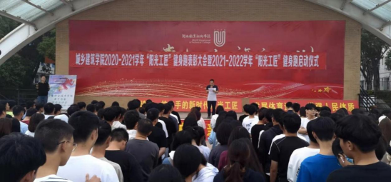 城乡建筑学院行政负责人对2020-2021学年“阳光工匠”健身跑活动进行总结,肯定了一学年以来取得的成绩,对获得优异成绩的班集体和先进个人表示了祝贺。他结合学生身心健康发展、落实国家通知要求和专业教育教学需要,对开展新一轮健身跑活动进行动员讲话,要求全体同学“走下网络、走出宿舍、走向操场”,积极参加体育运动,注意运动安全,强健身心体魄,做一技在手的新时代阳光工匠。他希望,师生齐心协力,敢于拼搏,力争在第十八届田径运动会上再创佳绩。